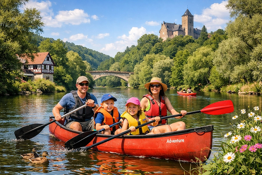 Fast schwerelos werden wir in einem Boot über das Wasser gleiten. Dabei sind wir der Natur ganz nah und können die Welt um uns herum aus einer völlig anderen Perspekive betrachten. Die Lahn mit wechselnden Flussverlauf, leichten Stromschnellen und teilweise per Hand zu bedienenden Schleusen lädt zu einer entspannten Kanutour ein. Wir erkunden die Lahn auf dem interessanten Abschnitt zwischen Weilburg und Aumenau mit einem Picknick am Campingplatz Gräveneck.